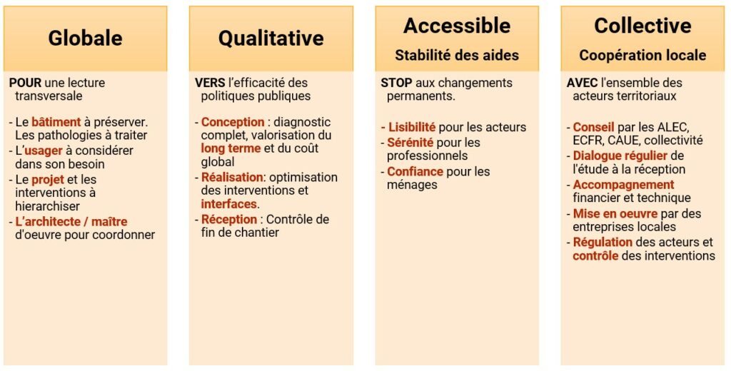 Pourquoi ce plaidoyer ? Nous croyons à une rénovation… ✔ Globale Fondée sur l’analyse globale du bâti et des usages ; permettant de : ✔ Qualitative ✔ Accessible ✔ Collective Nous demandons Pour une compréhension globale du bâti Pour améliorer la qualité Pour rendre la rénovation plus accessible Pour la Coopération locale Nous affirmons En synthèse […]